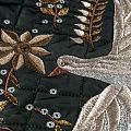 Курточный купон на синтепоне и подкладке, простеганный не крупными ромбами размером 3,5х3,5 см. С лицевой стороны тонкая, но прочная плащевая ткань с фантазийной вышивкой, с изнаночной - желто-бежевая ткань с полоску. Материал мягкий, объемный и "воздушный", хорошо держит форму и подойдет для пошива легких пальто, курток, жилетов, накидок-кейпов, парки.