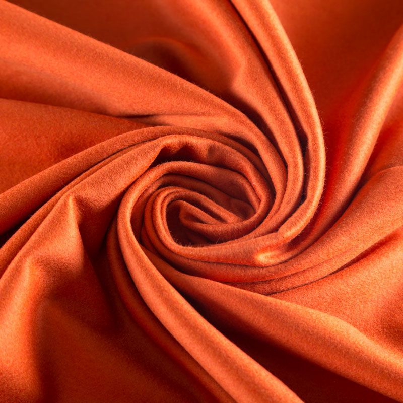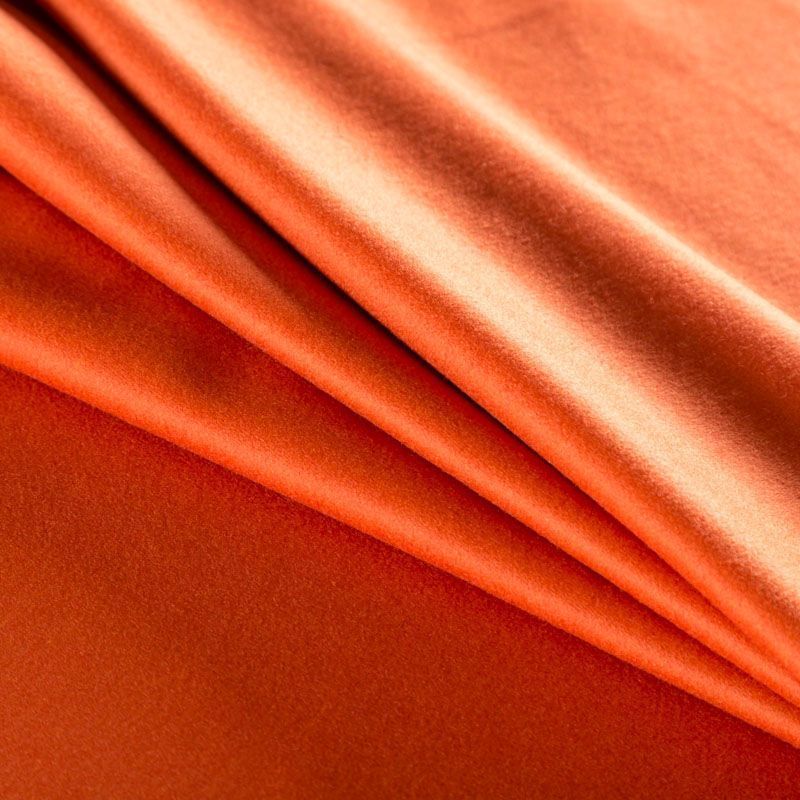 Пальтовая итальянская шерстьс кашемиром в красивом оранжевом оттенке. Ткань плотная, достаточно теплая, комфортная для одежды на сезон осень-зима. Полотно имеет короткий ворс. Мягкое и нежное на ощупь, не толстое и не тяжелое, хорошо держит форму. Прекрасно подойдет для пошива женских пальто, теплых костюмов, кейпов, мягких бомберов, жилетов и головных уборов.