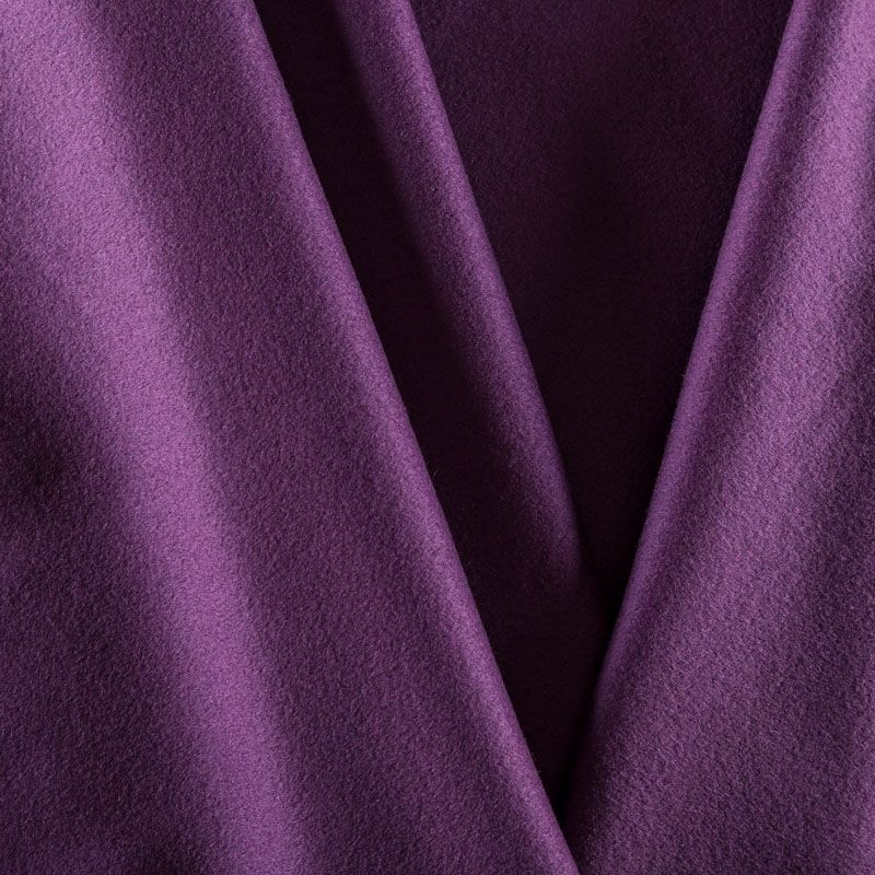 Итальянская пальтовая ткань из шерсти с кашемиром, в красивом фиолетовом оттенке. Пластичная, мягкая, поверхность с направленным прижатым ворсом. Подойдет для пошива пальто, кейпа, накидки, мягкого бомбера.