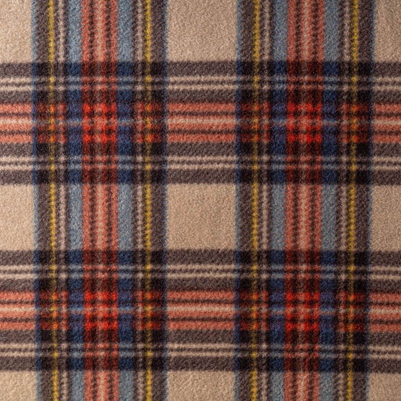 Пальтовая полушерстяная двухсторонняя ткань, мягкая и приятная на ощупь, формоустойчива, хорошо драпируется. Сочетание желтого, голубого, красного и черного цветов образует сложную красивую клетку на песочном фоне на лицевой стороне, изнанка - однотонный сине-голубой трикотаж. Ткань отлично подойдет на пальто любых фасонов, куртки-рубашки, теплого кардигана.