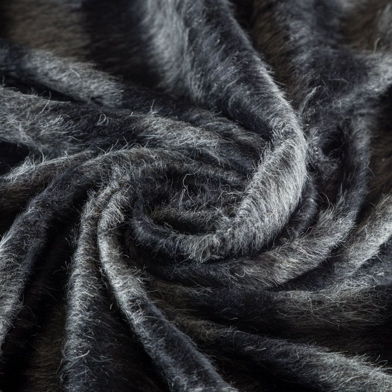 Итальянская шерсть с добавлением мохера в горизонтальную серо-черную полоску. Полотно с густым направленным ворсом, среднем плотности, пластичное, мягкое, приятное на ощупь. Подойдет для пошива пальто, кардигана, бомбера, пончо.