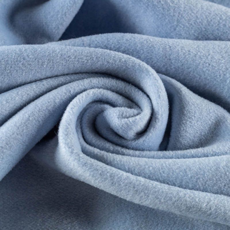 Плотная пальтовая ткань с коротеньким мягким ворсом на лицевой стороне и ровная на изнаночной. Она легко раскраивается, не скользит и не осыпается на срезах. Прекрасно подойдет для пошива женских пальто, теплых костюмов, кейпов, мягких бомберов, жилетов и головных уборов.