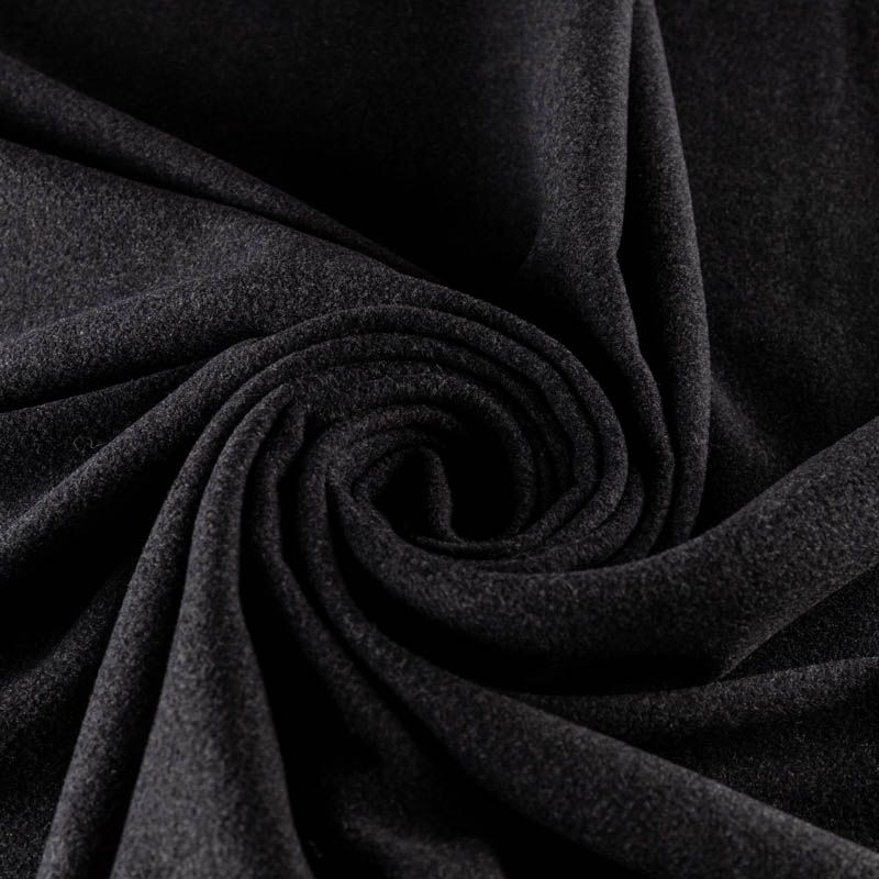 Пальтовая итальянская шерсть в черном цвете. Ткань плотная, достаточно теплая, комфортная для одежды на сезон осень-зима. Полотно имеет фактурнуб, слегка буклированную поверхность. Мягкое и приятное на ощупь, не толстое и не тяжелое, хорошо держит форму. Прекрасно подойдет для пошива женских пальто, теплых костюмов, кейпов, мягких бомберов, жилетов и головных уборов.