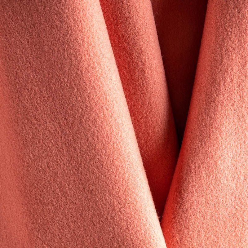 Плотная итальянская шерстяная пальтовая ткань с коротким мягким ворсом на лицевой стороне. Она легко раскраивается, не скользит и не осыпается на срезах, хорошо держит форму. Прекрасно подойдет для пошива женских пальто, теплых костюмов, кейпов, мягких бомберов, жилетов и головных уборов.
