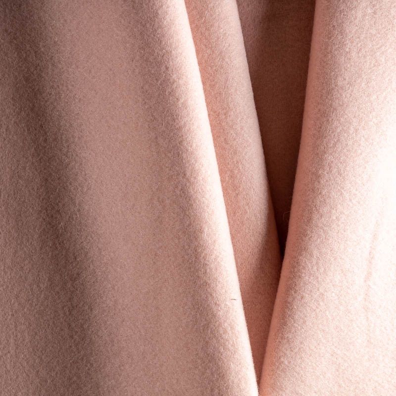Пальтовая итальянская шерсть в нежном розовом оттенке. Ткань плотная, достаточно теплая, комфортная для одежды на сезон осень-зима. Полотно имеет фактурную поверхность и мохеровый ворс. Мягкое и нежное на ощупь, не толстое и не тяжелое, хорошо держит форму. Прекрасно подойдет для пошива женских пальто, теплых костюмов, кейпов, мягких бомберов, жилетов и головных уборов.