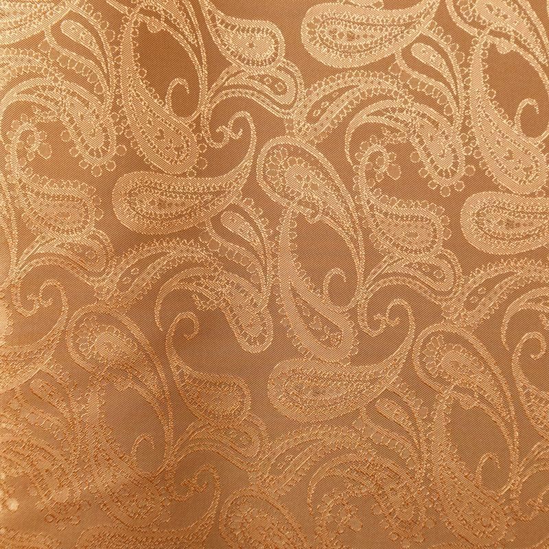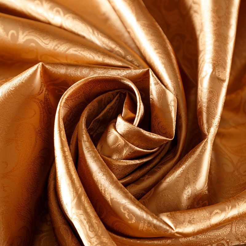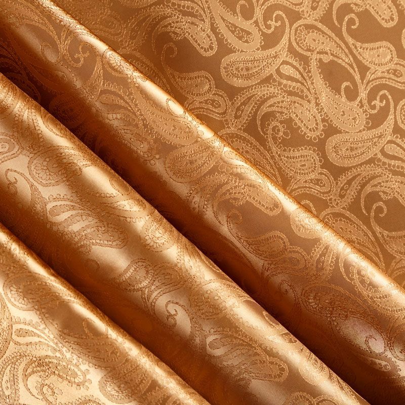 Итальянская вискозная подкладочная ткань карамельного оттенка с жаккардовым узором пейсли и красивым лоском. Полотно средней плотности, легкое, не просвечивает, хорошо скользит, не тянется. Подойдет для изготовления таких изделий, как пальто, костюмы, куртка, шуба, платье, жакет.