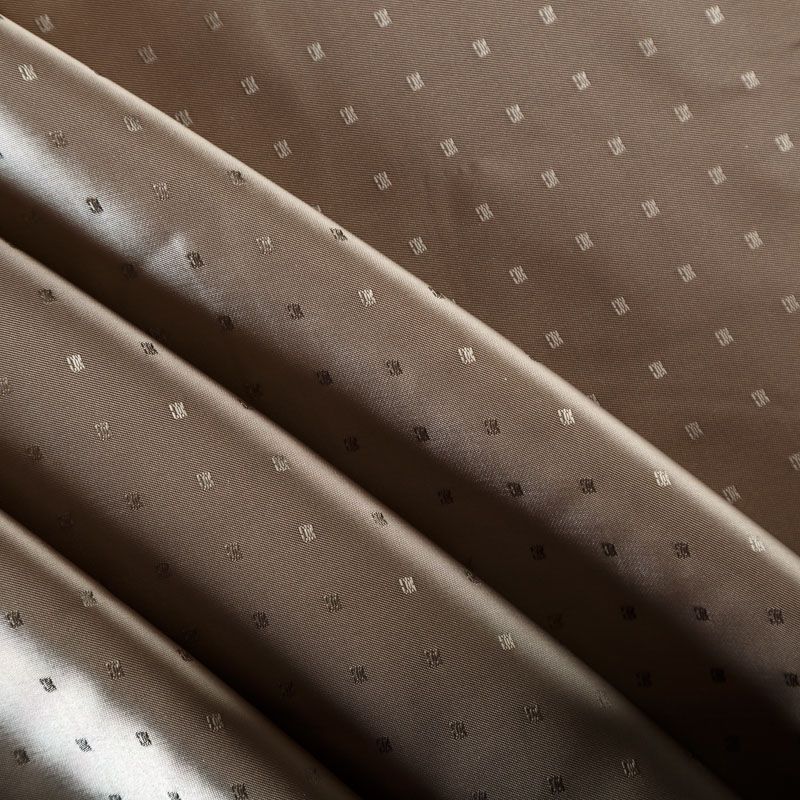 Итальянская подкладочная ткань из вискозы бронзового оттенка с редким жаккардовым узором и красивым блеском. Полотно средней плотности, легкое, не просвечивает, хорошо скользит, не тянется. Подойдет для изготовления таких изделий, как пальто, костюмы, куртка, шуба, платье, жакет.