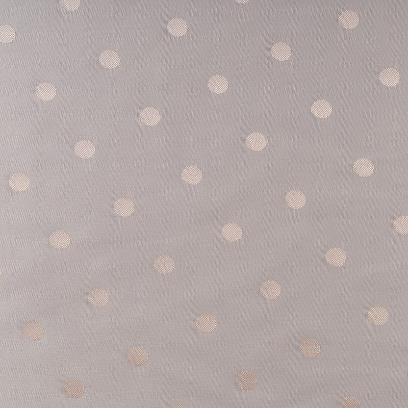 Подкладочная ткань легкая, с жаккардовым "горохом" благородного кремового оттенка, с красивым блеском. Не  просвечивает, хорошо скользит. Подойдет для изготовления таких изделий, как пальто, костюмы, куртка, шуба, платье, жакет.
