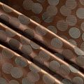 Подкладочная ткань легкая, с жаккардовым крупным "горохом",  оттенка бронзы, с красивым блеском. Не  просвечивает, хорошо скользит. Подойдет для изготовления таких изделий, как пальто, костюмы, куртка, шуба, платье, жакет.