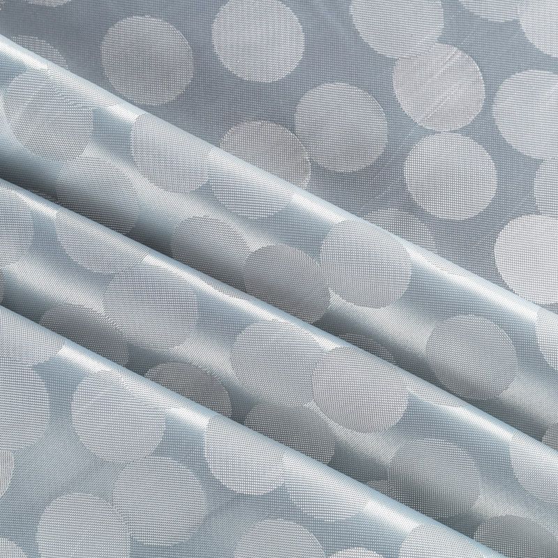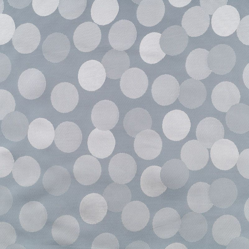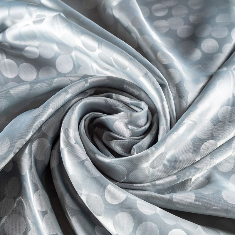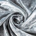 Подкладочная ткань легкая, с жаккардовым крупным "горохом",  серебристо-серого оттенка, с красивым блеском. Не  просвечивает, хорошо скользит. Подойдет для изготовления таких изделий, как пальто, костюмы, куртка, шуба, платье, жакет.