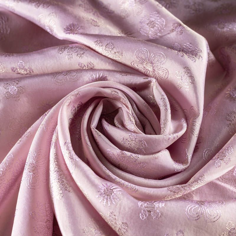 Подкладочная ткань легкая, с гладкой поверхностью и цветочным жаккардовым рисунком, с красивым блеском. Не просвечивает, хорошо скользит. Подойдет для изготовления таких изделий, как пальто, костюмы, куртка, шуба, платье, жакет.