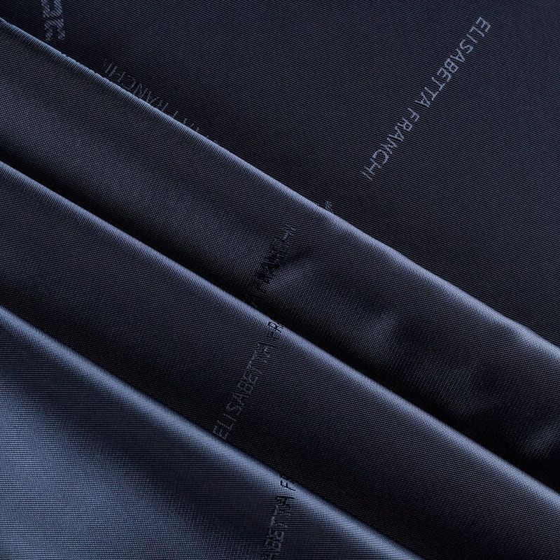 Подкладочная ткань легкая, с твиловой поверхностью и редкими жаккардовым надписями, с красивым блеском. Не просвечивает, хорошо скользит. Подойдет для изготовления таких изделий, как пальто, костюмы, куртка, шуба, платье, жакет.