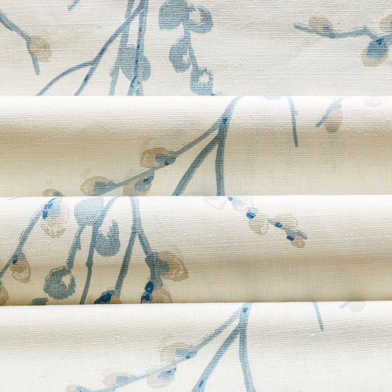 Хлопковая портьерная ткань с изящным весенним принтом в голубых оттенках на молочном теплом фоне. Ткань средней плотности, без блеска, хорошо драпируется, имеет полонтяное переплетение. Можно использовать для пошива портьер, римской шторы, салфеток, столового белья, подушек, покрывал и других предметов текстильного интерьера.