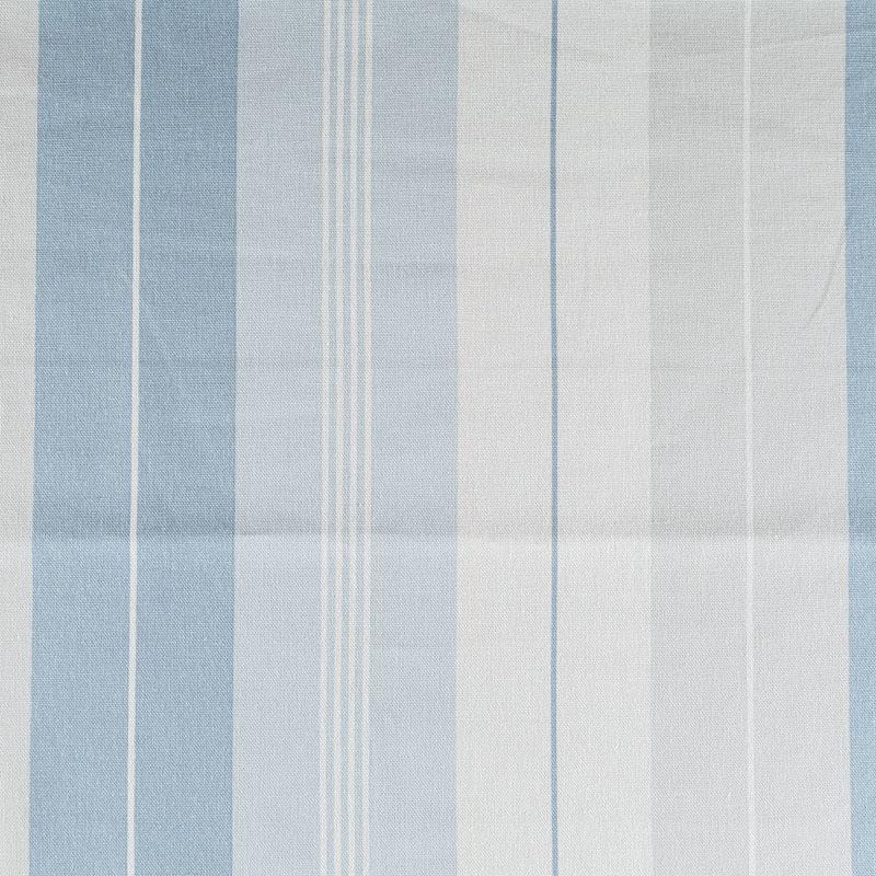 Матовая фактурная портьерная ткань в полоску, которая расположена вдоль кромки. Представлена в серо-голубой палитре. Ткань средней плотности, без блеска, хорошо драпируется, имеет полонтяное переплетение. Прекрасно впишется в самые разные стилевые направления (прованс, кантри). Можно использовать для пошива портьер, римской шторы, салфеток, столового белья, подушек, покрывал и других предметов текстильного интерьера.