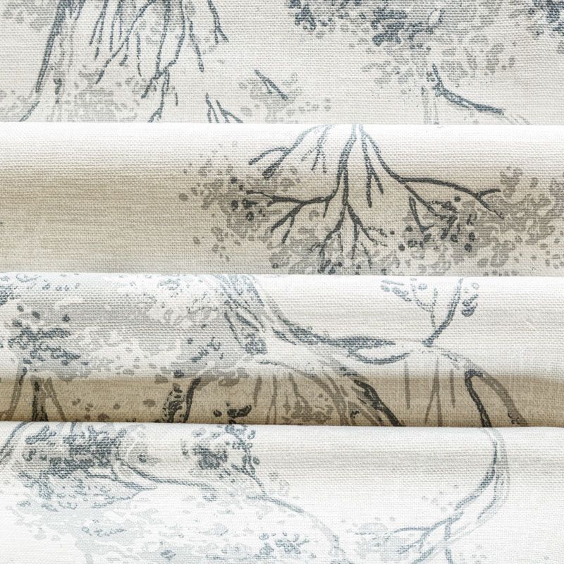 Хлопковая портьерная ткань английского производителя. На светлой текстурированной основе нанесен изящный растительный принт в серой гамме. Ткань средней плотности, прекрасно держит форму, драпируется в устойчивые складки. Подойдет для классических портьер, римских штор, покрывал, подушек, скатертей, салфеток и других элементов текстильного интерьера как в самостоятельном исполнении, так и качестве компаньона к однотонным варинтам.