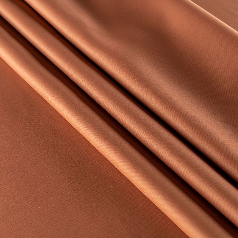 Двухстороняя плотная ткань. Обе стороны гладкие, имеют сатиновый легкий глянец. Ткань хорошо драпируется, укладываясь в крупные ниспадающие пластичные складки и позволяет использовать любые виды крепления для штор – люверсы, ленту, кольца.  Блокирует от 30 до 70 % проникновение света в помещении, не склонна к выгоранию и деформации. Удачно впишется в такие интерьеры, как эко, лофт, модерн в качестве портьер и других элементов текстильного оформления.