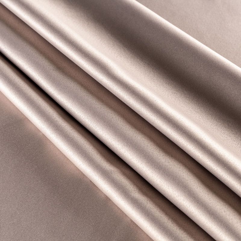 Двухстороняя плотная ткань. Обе стороны гладкие, имеют сатиновый легкий глянец. Ткань хорошо драпируется, укладываясь в крупные ниспадающие пластичные складки и позволяет использовать любые виды крепления для штор – люверсы, ленту, кольца.  Блокирует от 50 до 90 % проникновение света в помещении, не склонна к выгоранию и деформации. Удачно впишется в такие интерьеры, как эко, лофт, модерн в качестве портьер и других элементов текстильного оформления.