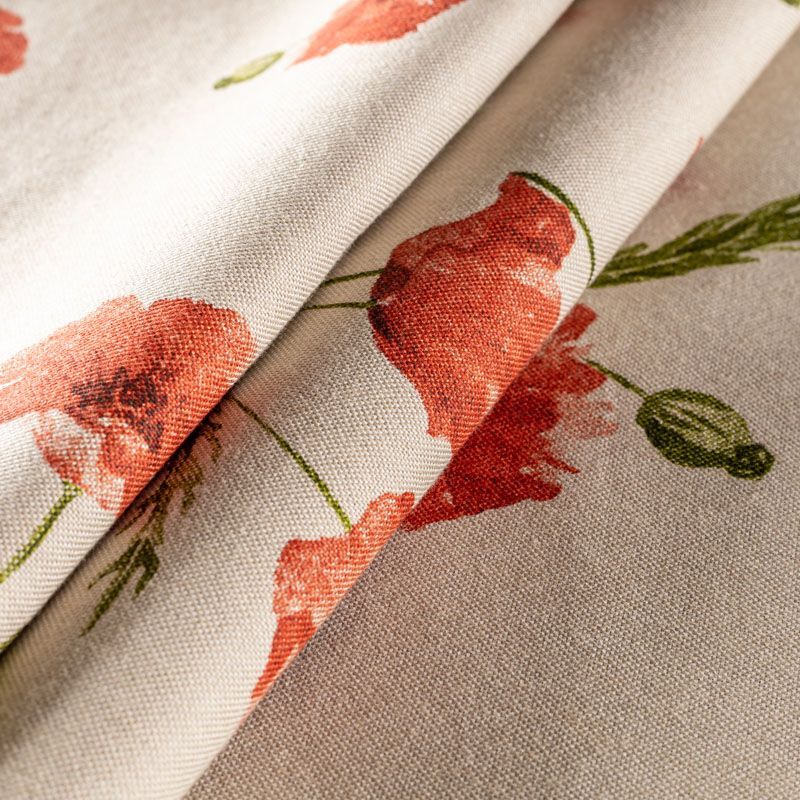 Принтованная ткань с цветочным дизайном, выполненный на смесовой основе. Ткань очень приятная на ощупь за счёт хлопка в составе и очень универсальная, прекрасно подойдет для оформления интерьеров в английском стиле, прованс, кантри, шебби шик. Может использоваться  для пошива портьер, римской шторы, покрывала, чехлов для мебели, скатертей, салфеток, подушек и других предметов тектильного интерьера.
