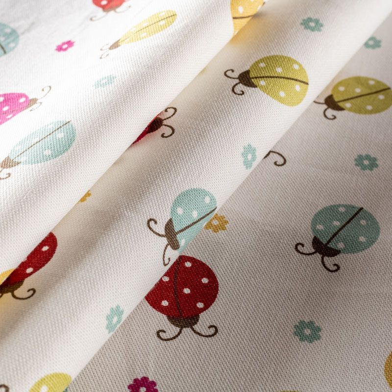 Натуральная хлопковая портьерная ткань из коллекции Счастливые дни известного бренда Fryett's с милым ярким принтом в виде божьих коровок. Ткань средней плотности, без блеска, хорошо драпируется, имеет полонтяное переплетение. Прекрасно подойдет для оформления детской или дачного интерьера. Можно использовать для пошива портьер, римской шторы, салфеток, столового белья, подушек, покрывал, обивки мебели.