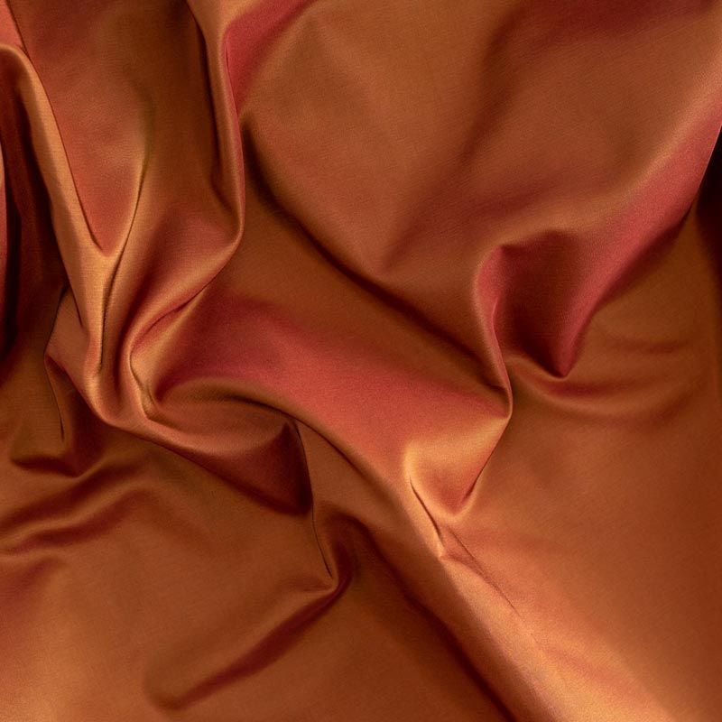 Легкая, но достаточно прочная и плотная, тафта очень долговечна и красиво переливается на свету, отлично держит форму, обладает характерным глянцевым блеском. Эта ткань способна формировать роскошные драпировки, поэтому замечательно подойдет для основных и декоративных портьер. Рекомендуется для пошива римских штор, покрывал, наволочек. Тафта может быть любого оттенка, гладкой или с вышивкой. Ее можно использовать в интерьере любого стиля от модерн и барокко до хай-тек или даже фьюжн.