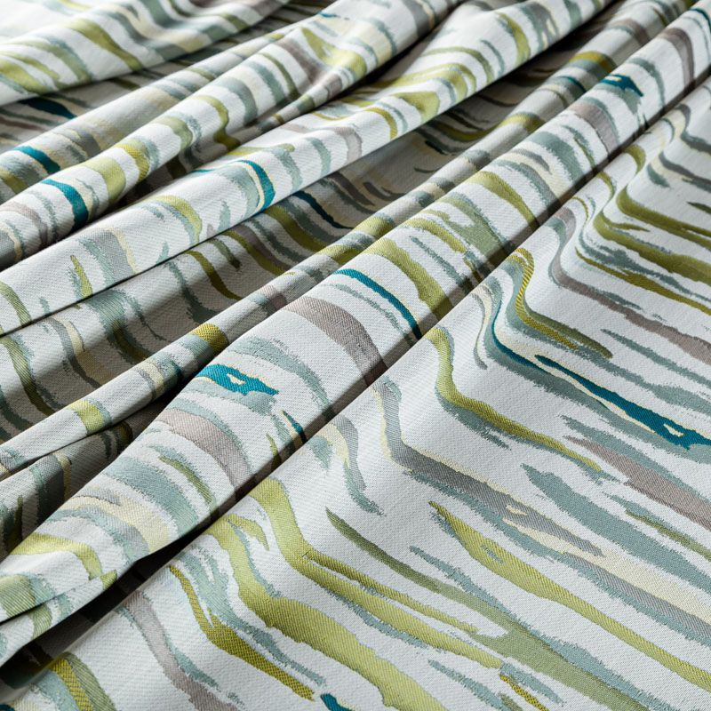 Стильная жаккардовая ткань зеленого оттенка с абстрактным рисунком из коллекции Эльтам известного бренда Fryett's. Ткань средней плотности, имеет фактурную матовую поверхность, прекрасно держит форму, хорошо драпируется. Ткани этой коллекции прекрасно впишутся в традиционный и современный интерьер в качестве римской или классической шторы, подушек, обивки мебели.