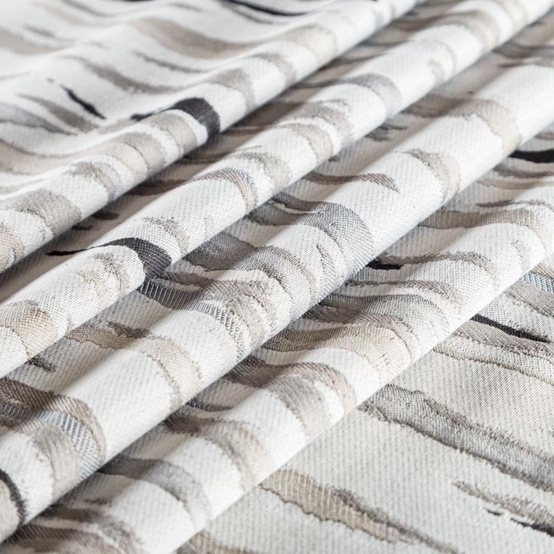 Стильная жаккардовая ткань светло-серого цвета с абстрактным рисунком из коллекции Эльтам известного бренда Fryett's. Ткань средней плотности, имеет фактурную матовую поверхность, прекрасно держит форму, хорошо драпируется. Ткани этой коллекции прекрасно впишутся в традиционный и современный интерьер в качестве римской или классической шторы, подушек, обивки мебели.