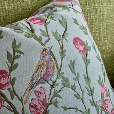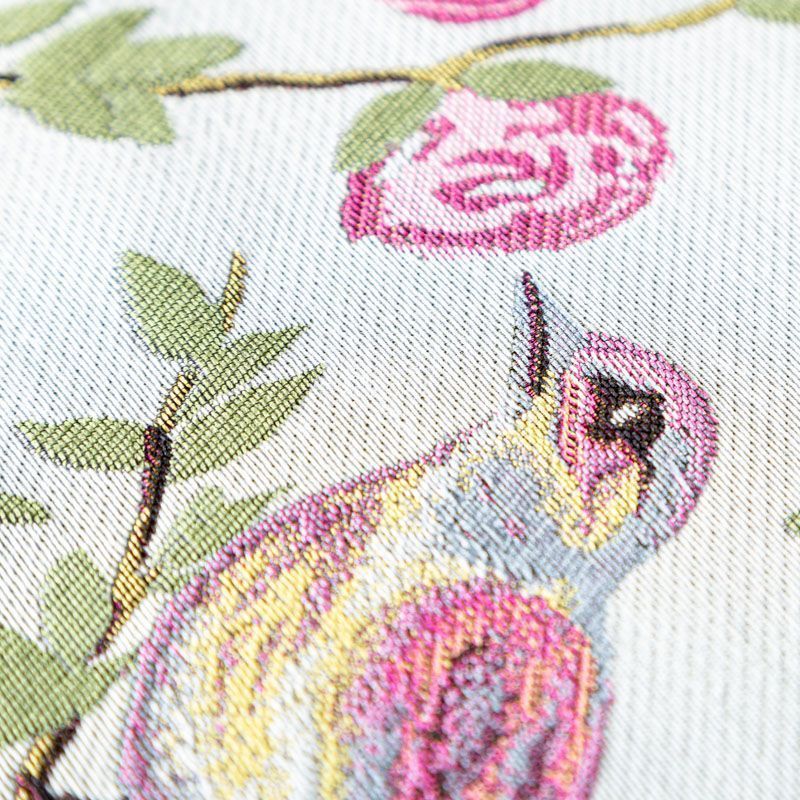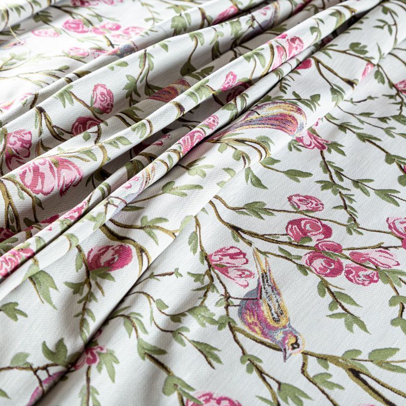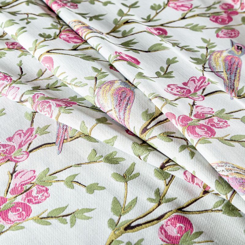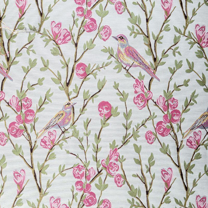 Акцентная жаккардовая ткань светло-серого оттенка с потрясающим дизайном цветущих веток с птицами из коллекции Одли известного бренда Fryett's. Ткань средней плотности, имеет фактурную, матовую поверхность, прекрасно держит форму. Ткани этой коллекции прекрасно впишутся в традиционный и современный интерьер в качестве римской или классической шторы, подушек, обивки мебели.