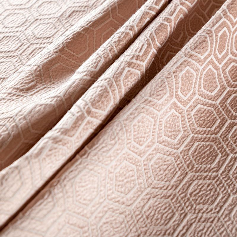 Стильная жаккардовая ткань розоватого оттенка с элегантным геометиречским дизайном из коллекции Кавала известного бренда Fryett's. Ткань высокой плотности, имеет фактурную поверхность и сдержанный сатиновый блеск, прекрасно держит форму. Ткани этой коллекции прекрасно впишутся в традиционный и современный интерьер в качестве римской или классической шторы, подушек, обивки мебели.