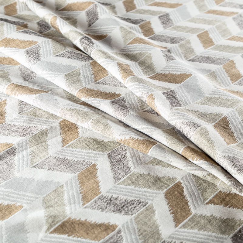 Стильная жаккардовая ткань нейтрального бежевого цвета с геометрическим узором "зиг-заг" из коллекции Зена известного бренда Fryett's. Ткань высокой плотности, имеет матовую фактурную поверхность, прекрасно держит форму. Ткани этой коллекции прекрасно впишутся в традиционный и современный интерьер в качестве римской или классической шторы, подушек, обивки мебели.