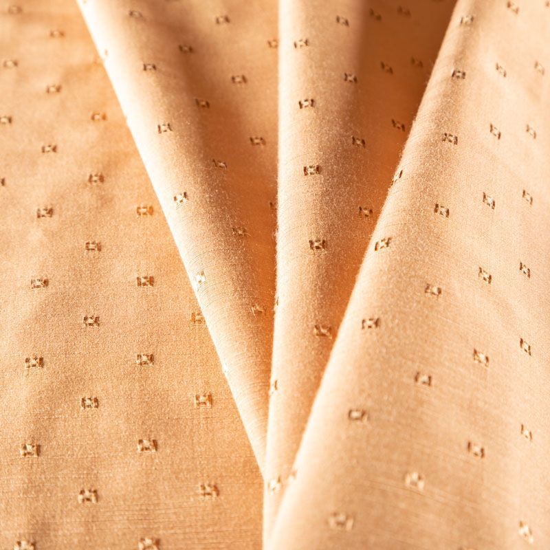 Изысканная портьерная ткань на хлопковой основе от известного бренда Fryett's с фактурной поверхностью, которая имитирует дикий шелк. Ткань средней плотности имеет сдержанный благородный блеск, хорошо держит форму и драпируется. Подойдет для портьер, римсой шторы, покрывал, подушек, скатертей, салфеток  и других элементов текстильного интерьера как в самостоятельном исполнении, так и качестве компаньона к цветным варинтам.