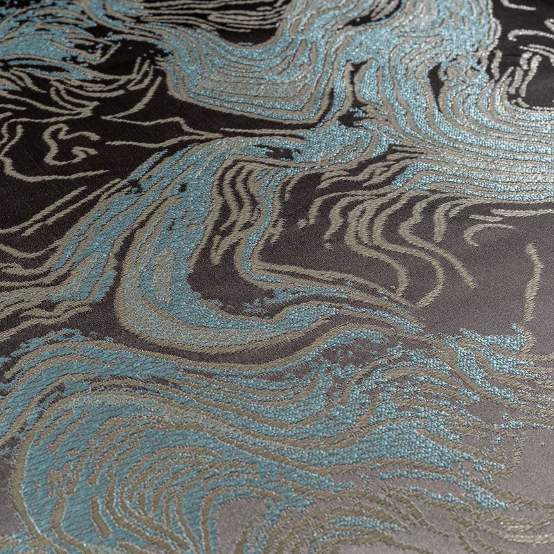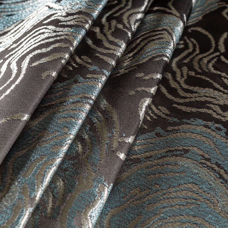 Интересная жаккардовая ткань с модным абстрактным дизайном, имитирующим срез камня, прекрасно подойдет для стильного современного интерьера. Ткань средней плотности, мягкая, хорошо драпируется и держит форму. Подойдет в качестве штор для гостиной, спальни, также можно использовать для пошива покрывала, декоративных чехлов, подушек, римской шторы.