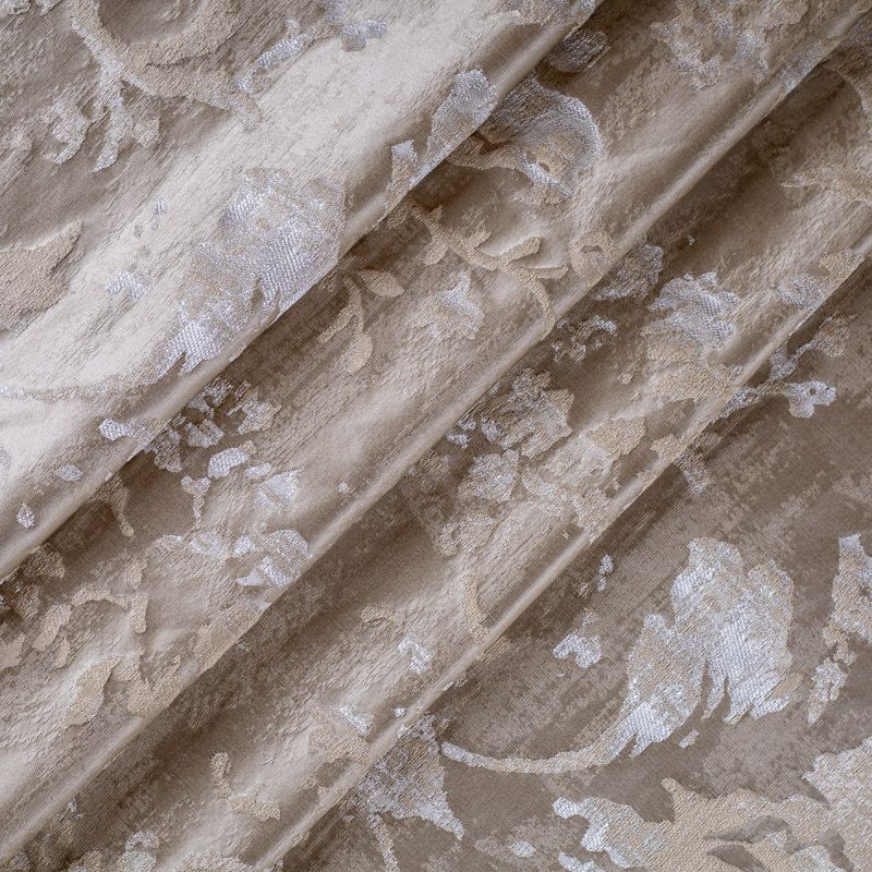 Итальянская жаккардовая портьерная ткань в благородной цветовой гамме с цветочно-растительным орнаментом. Ткань хорошо драпируется.  За счет сочетания шелковых и льняных нитей рисунок как будто вытравлен на поверхности ткани. Подходит для пошива штор, ламбрекенов, покрывал, наволочек, чехлов на мебель и других элементов декора для стилизованных классических интерьеров.