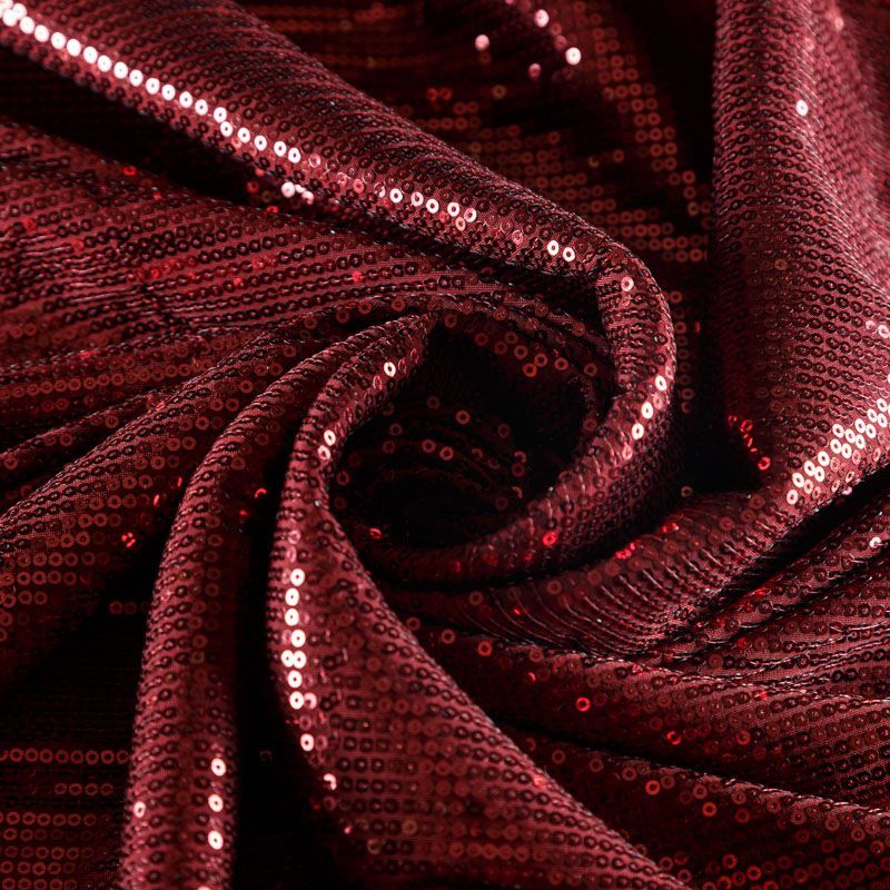 Блестящие пайетки благородного багрового оттенка. Мелкие, размером около 3 мм. Основа - трикотажное полотно, комфортное в носке. Ткань не прозрачная, тянется.  Подойдет для вечернего коктельного платья или юбки, комбинезона, топа, танцевальных и сценических костюмов.