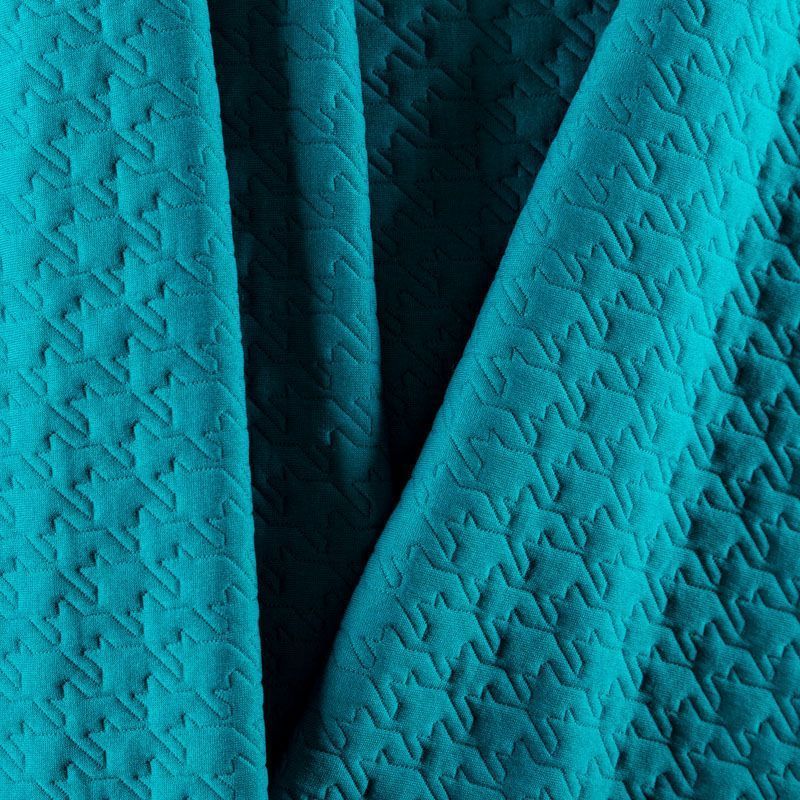 Плотное трикотажное полотно с имитацией стежки. Поверхность ткани объемная, мягкая, приятная на ощупь. Трикотаж не просвечивается, хорошо тянется за счет эластана в составе, держит форму. Прекрасно подойдет для пошива легких пальто, курток, бомберов, кардиганов, платьев, юбок, шорт.