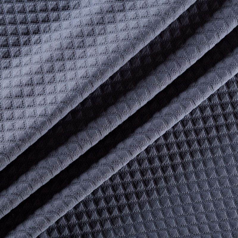 Плотное трикотажное полотно с имитацией стежки. Поверхность ткани объемная, мягкая, приятная на ощупь. Трикотаж не просвечивается, хорошо тянется за счет эластана в составе, держит форму. Прекрасно подойдет для пошива легких пальто, курток, бомберов, кардиганов, платьев, юбок, шорт.