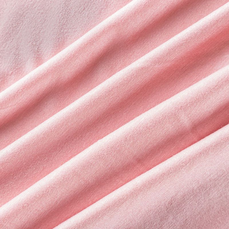 Тонкий вискозный трикотаж розового оттенка с гладкой поверхностью, который особенно эффектно смотрится в драпировке. Материал не просвечивает, приятный к телу и комфортный в носке. Подойдет для пошива топов, футболки, бадлонов, лонгслива, кардигана, спортивного платья.