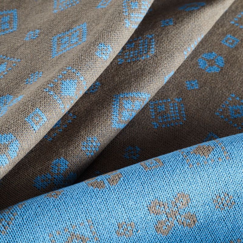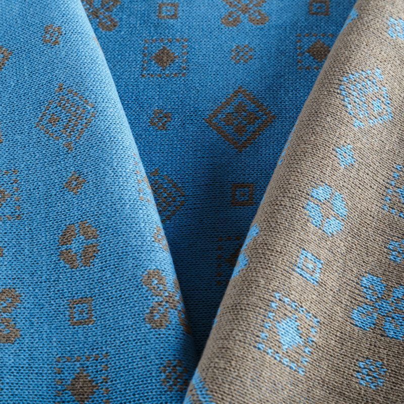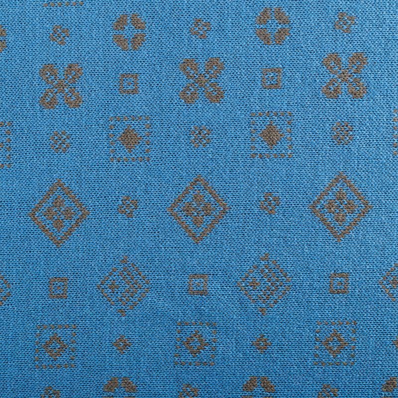 Итальянский теплый мягкий вязаный шерстяной трикотаж, два слоя которого соединены между собой жаккардовым геометрическим узором. Полотно очень пластичное, приятное на ощупь, не колется. При соответствующей обработке швов одежду из этого трикотажа можно носить на обе стороны. Подойдет для пошива теплых уютных свитеров, кардиганов, пальто, костюмов, теплого платья, свитшота, джемпера.