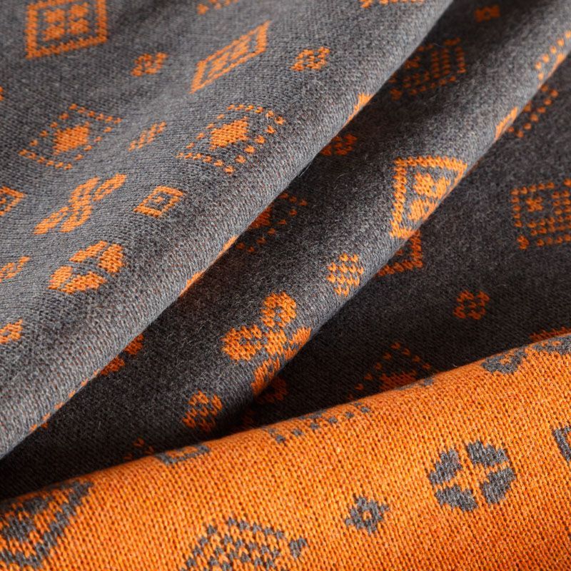 Итальянский теплый мягкий вязаный шерстяной трикотаж, два слоя которого соединены между собой жаккардовым геометрическим узором. Полотно очень пластичное, приятное на ощупь, не колется. При соответствующей обработке швов одежду из этого трикотажа можно носить на обе стороны. Подойдет для пошива теплых уютных свитеров, кардиганов, пальто, костюмов, теплого платья, свитшота, джемпера.