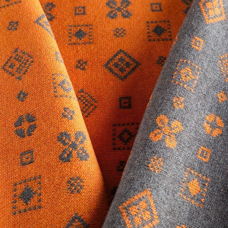 Трикотаж 2-х сторонний вязаный 056-05819 серо-оранжевый в Петрозаводске