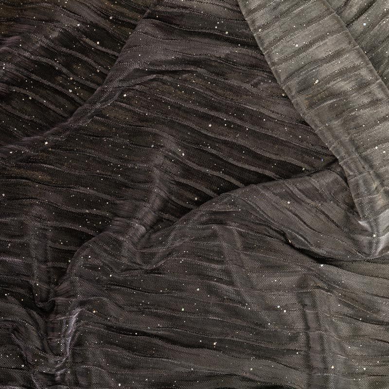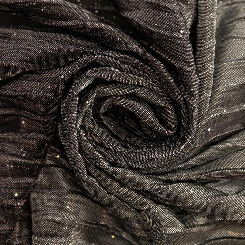 Сложнейшее переплетение люрексовой и металлизированной нити, а также волнообразное гофре создают впечатление живой ткани, которая меняет свой цвет при каждом движении и направлении преломления света. Ткань тонкая, легкая, подойдет для пошива платья, юбки на подкладе, туники, блузы, топа. Градиент расположен в направлении от кромки к кромке. Набирается объемом.