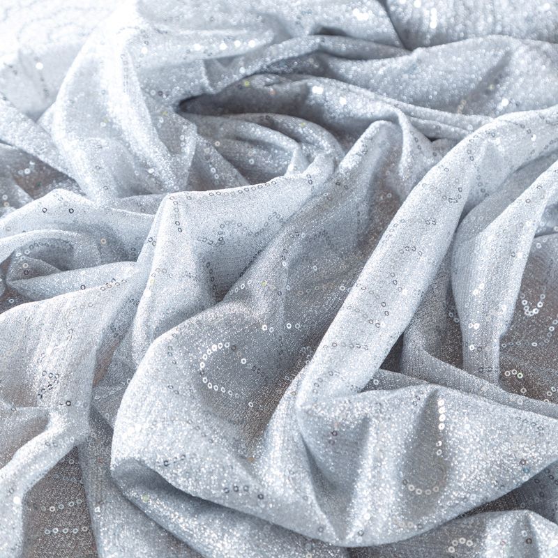 Трикотаж-гофре с пайетками 056-09123 серебристый однотонный