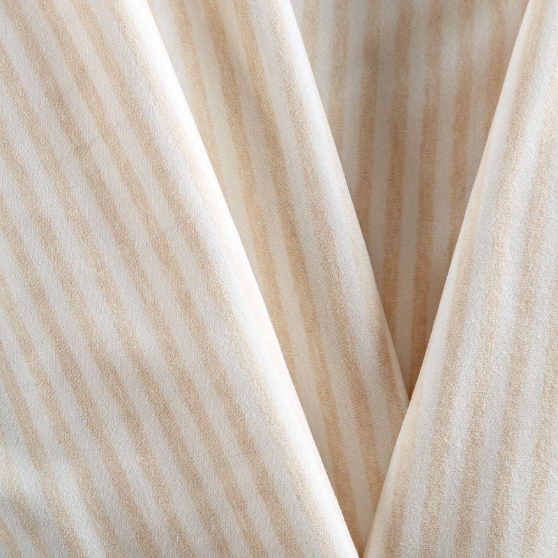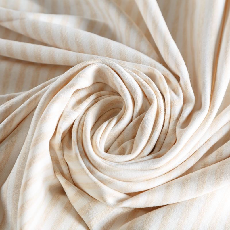 Хлопковый трикотаж качества пенье в полоску. Поверхность ткани гладкая, полотно средней плотности, не толстое, мягкое и нежное на ощупь. Прерасно подойдет для пошива детской одежды, постельного белья и комплектов в кроватку, пижамы, домашней и летней одежды.