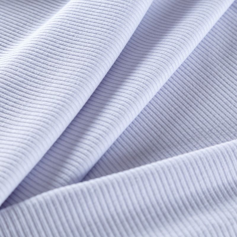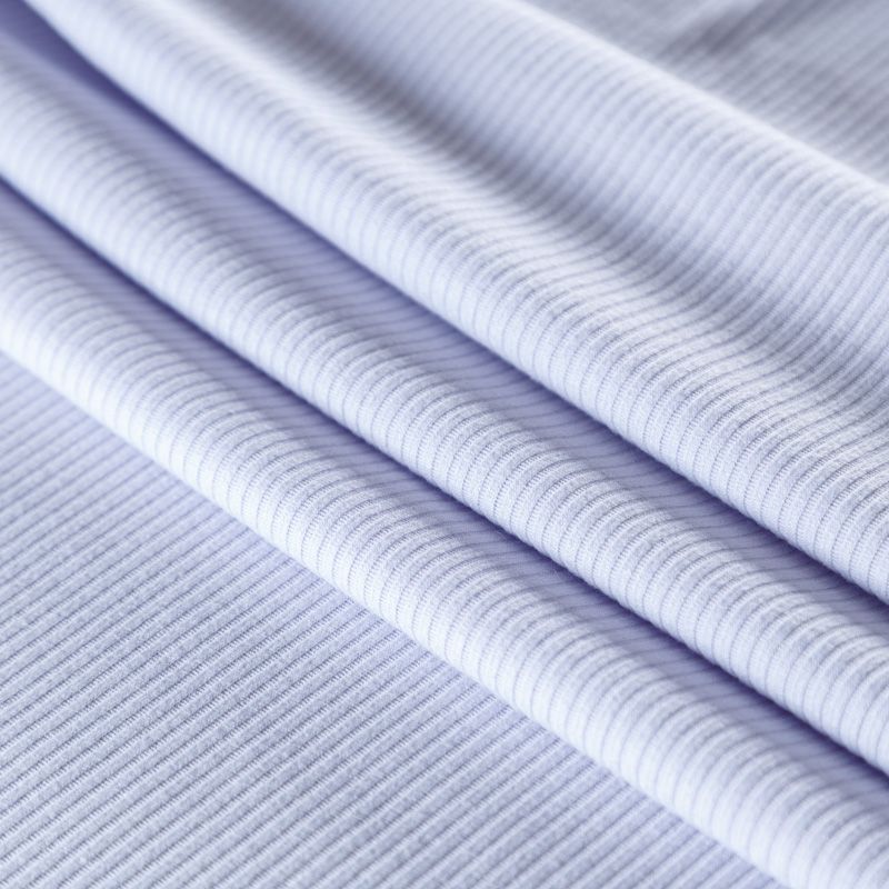 Трикотаж-лапша средней плотности, с высокой степенью эластичности, поверхность рельефная за счет эффекта резинки. С изнанки трикотаж гладкий, комфортный, подходит для использования без подклада. Сшить из такого полотна можно топы, лонгсливы, водолазки, платья,  юбки, брючные комплекты. Направление полос - вдоль линии кромки.