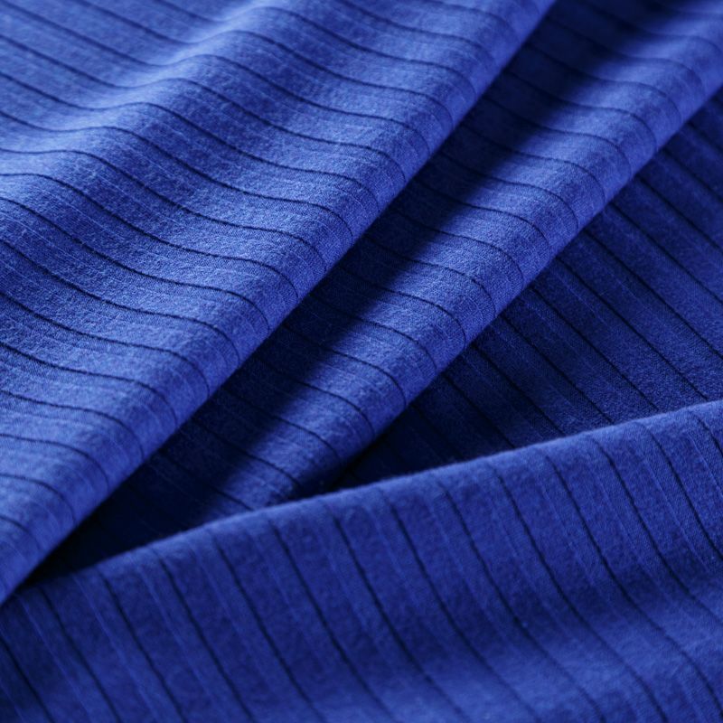 Трикотаж-лапша средней плотности, с высокой степенью эластичности, поверхность рельефная за счет эффекта резинки. С изнанки трикотаж гладкий, комфортный, подходит для использования без подклада. Сшить из такого полотна можно топы, лонгсливы, водолазки, платья,  юбки, брючные комплекты. Направление полос - вдоль линии кромки.