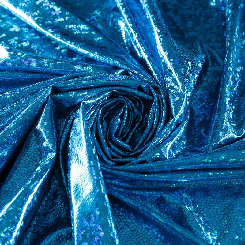Эффектное трикотажное полотно с напыленными разноцветными блестками. Поверхность фактурная с рисунком под рептилию, который не деформируется при растяжении трикотажа. Материал очень пластичный, образует струящиеся мягкие складки, отлично тянется, не просвечивает, не мнется. Изнаночная сторона матовая, приятная на ощупь. Идеальный выбор для нарядных моделей, гимнастических и танцевальных костюмов.