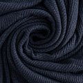 Трикотаж-лапша темно-синего цвета с люрексовой нитью. Мягкая и эластичная ткань, великолепно драпируется и красиво облегает. Прекрасно подходит для изделий по фигуре, а также нарядов с мягкими складками. Трикотаж можно использовать для вечерних образов — платья, блузки, топы, кардигана и боди.