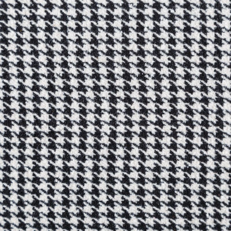 Твид белого цвета с плетеной матовой поверхностью, мелкий узор "гусиная лапка" образуется переплетением черных нитей. Ткань не сухая, мягкая, но плотная, не просвечивает, теплая, хоршо драпируется. Отлично подойдет для пошива легкой верхней одежды, жакетов, костюмов, юбок.