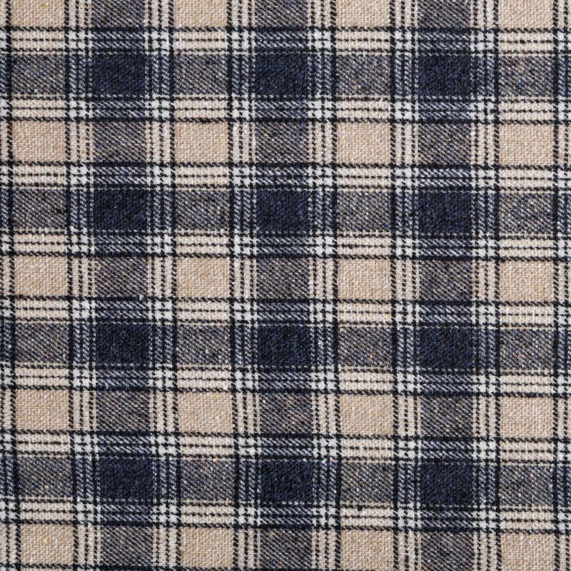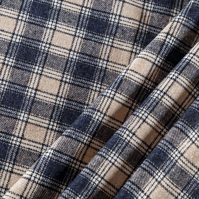 Фактурная и плотная твидовая ткань с добавлением хлопка в красивую бежево-синюю клетку. Ткань мягкая, пластичная, приятная на ощупь. Хорошо драпируется и образует формоустойчивые складки. Твид отлично подходит для пошива костюмов, пальто, пиджаков, брюк и курток, юбок, жилетов, головных уборов в классическом стиле.