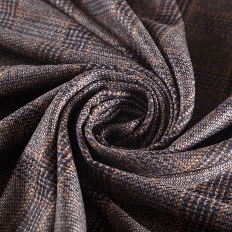 Фактурная твидовая ткань в красивую серо-коричневую клетку тартан. Ткань мягкая, пластичная, приятная на ощупь. Хорошо драпируется и образует формоустойчивые складки. Твид отлично подходит для пошива костюмов, пальто, пиджаков, брюк и курток, юбок, жилетов, головных уборов в классическом стиле.