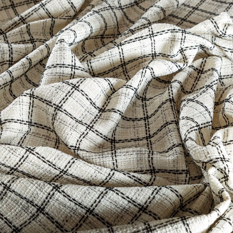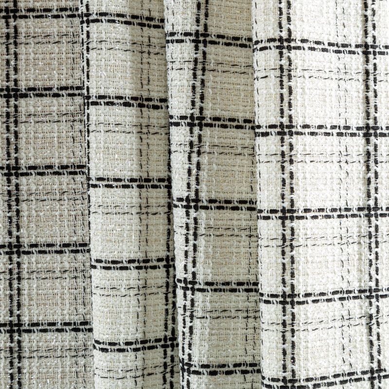 Мягкая, пластичная и объемная ткань, с разреженной и рельефной вывязанной структурой. Буклированный твид в стиле Шанель буквально соткан из различных по толщине и текстуре нитей, образующих рисунок в виде клетки. В плетение добавлена блестящая люрексная нить. Твид идеально подходит для пошива платьев, юбок, жакетов, легких пальто, эффектных бомберов и курток.